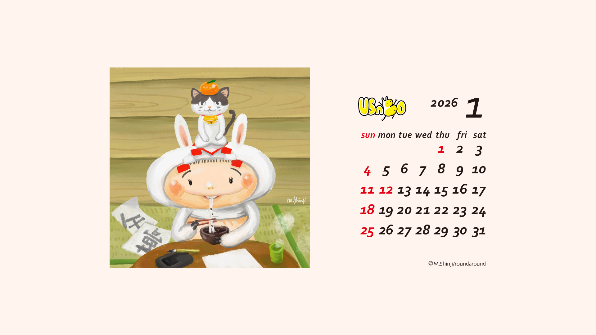 今月のうさぼさんの世界を、スマホやPCの中にも連れて帰ってね。